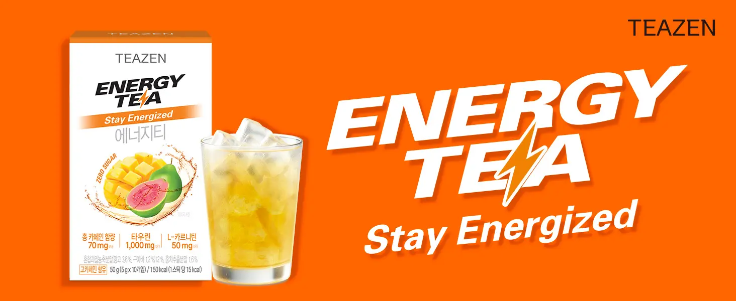 TEAZEN Energy Tea – Triple Boost – Natural Energy Drink with Guarana, Black Tea, Guava & Mango – Sugar-Free, Low Calorie, Instant Hydration & Focus Booster – 10 Sticks