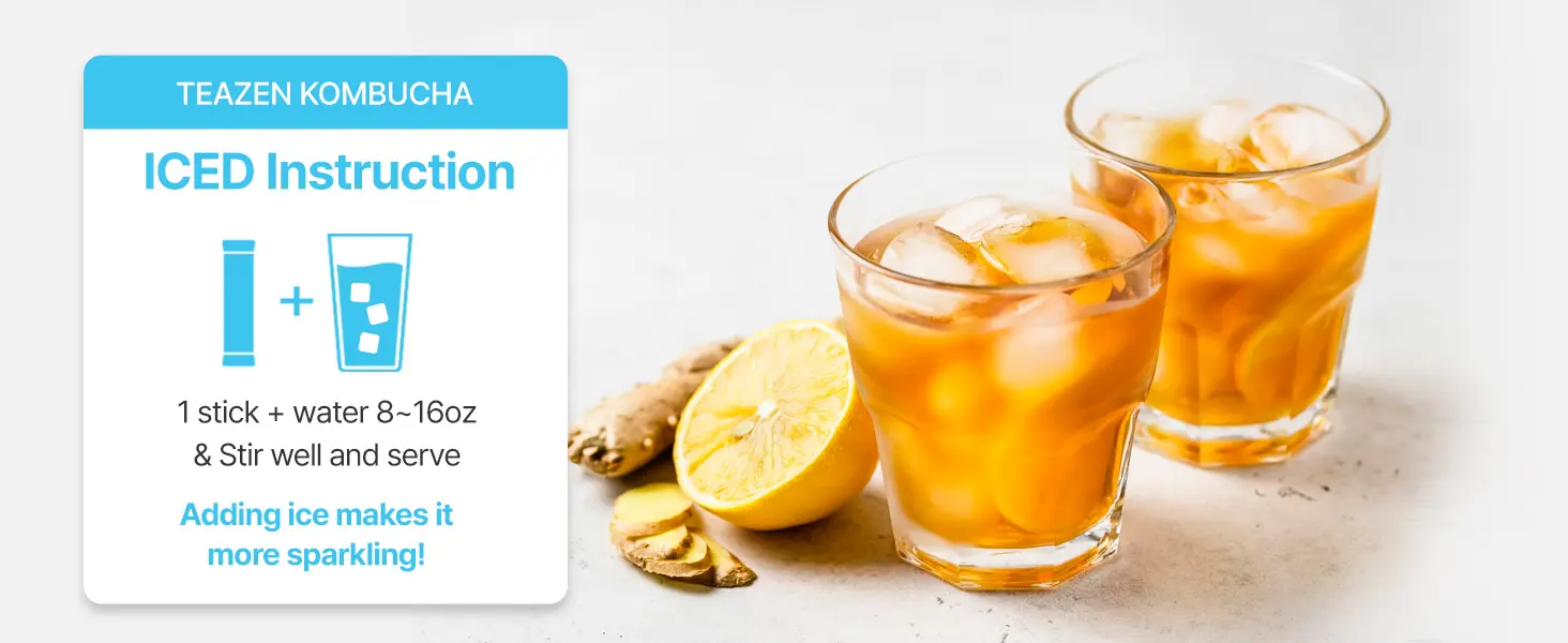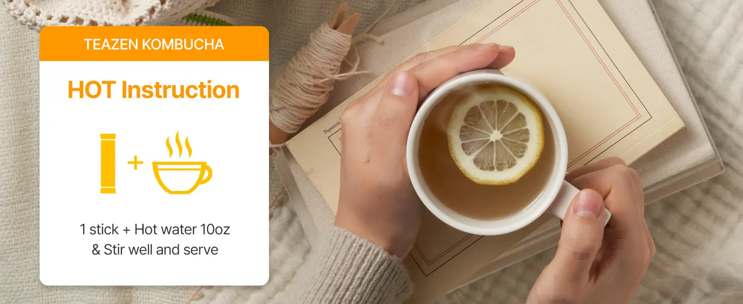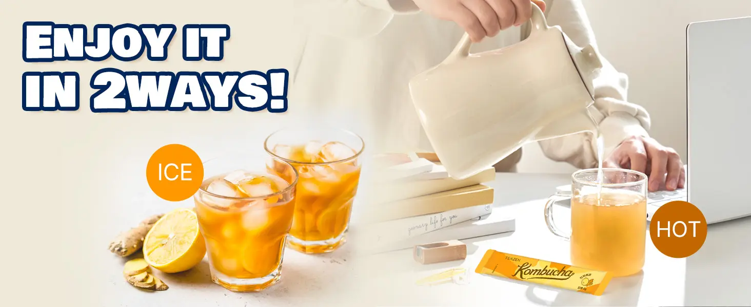 - Portable stick packs dissolve in seconds—simply add to hot or cold water, stir, and enjoy. Whether you want a soothing warm tea for sore throats or a refreshing iced kombucha, it’s the perfect drink at home, work, or on the go.