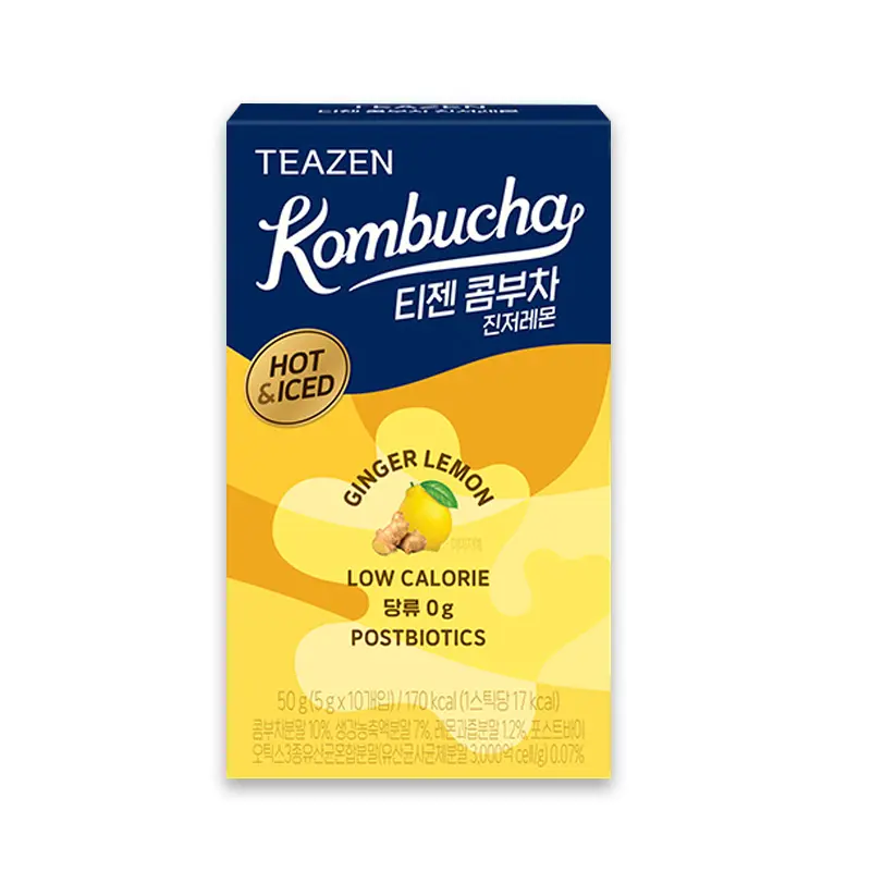 - Formulated with live probiotics, prebiotic fiber, and heat-resistant postbiotics, TEAZEN Lemon Ginger Kombucha helps balance gut microbiota, aid digestion, and strengthen natural defenses. A wellness booster for all seasons.