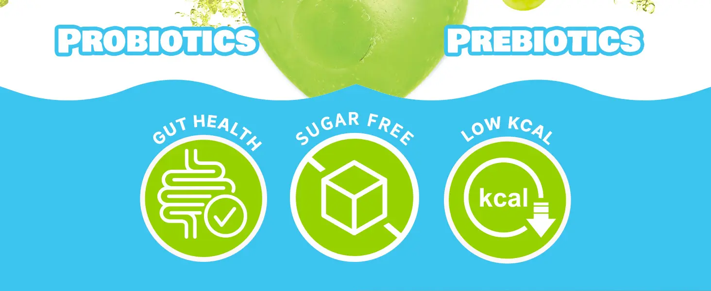 Érythritol, acide citrique, acide DL-malique, fibres, bicarbonate de sodium, poudre de kombucha 10 % (Allemagne/thé kombucha 70 %, maltodextrine), poudre de jus de muscat Shine 5 % (dextrine, extrait de muscat Shine (muscat Shine 100 %, Corée) 30 %), fructo-oligosaccharide, arôme, poudre de germe d'orge (Corée), vitamine B2, sucralose, prébiotiques (Lactobacillus plantarum, Lactobacillus rhamnosus, Lactobacillus fermentum, Lactobacillus casei, Bifidobacterium breve, Bifidobacterium bifidum, Lactobacillus salivarius, Lactobacillus acidophilus, Bifidobacterium longum, Lactobacillus paracasei, Streptococcus thermophilus, Lactobacillus helveticus)