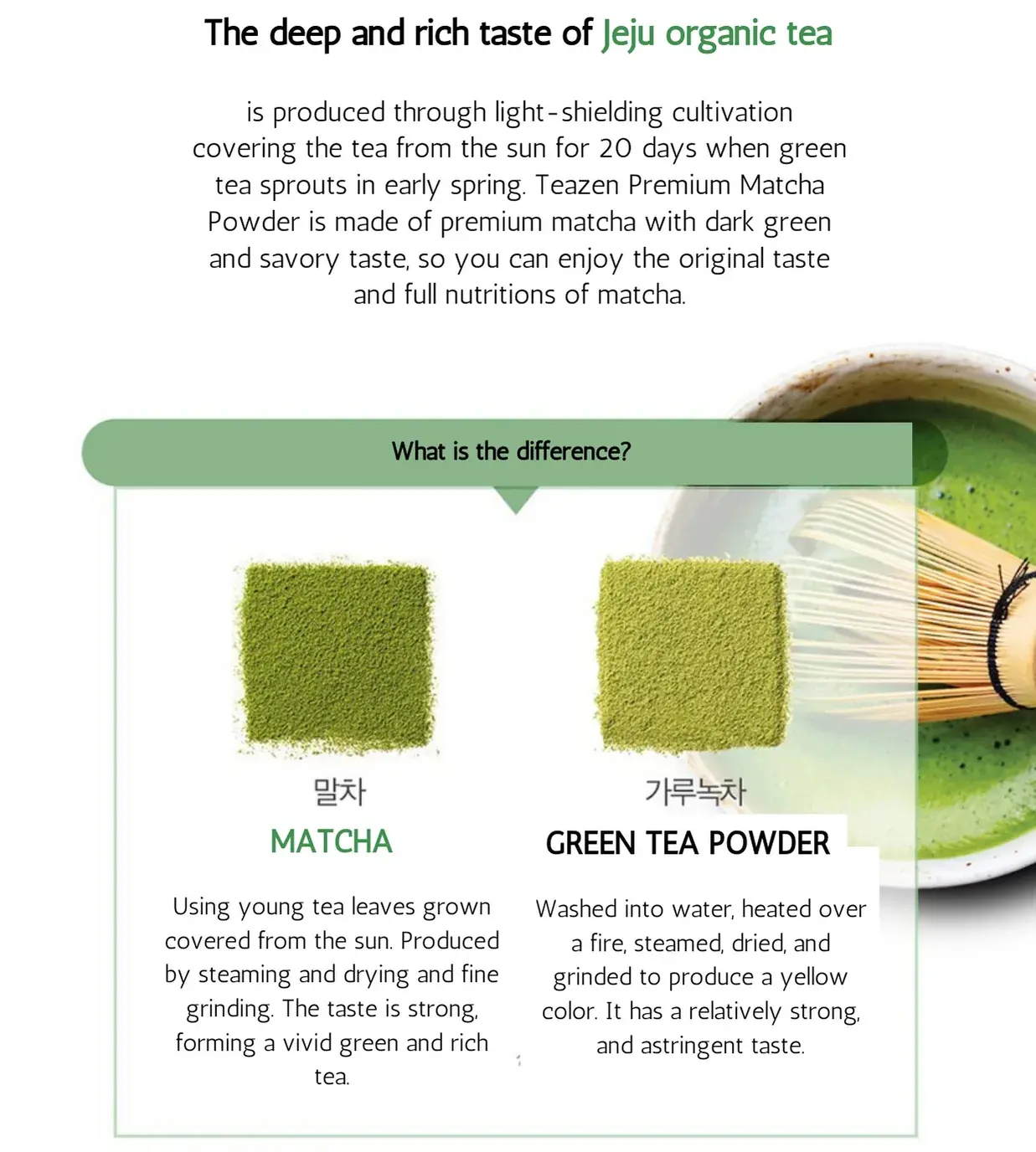 • Saveur authentique du matcha de Jeju